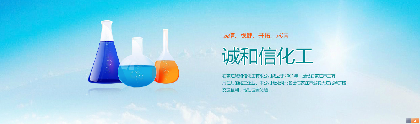 石家莊誠和信化工有限公司成立于2001年,是經石家莊市工商 局注冊的化工企業。本公司地處河 北省會石家莊市迎賓大道裕華東路 ,交通便利,地理位置優越。公司 主要產品....詳細>>